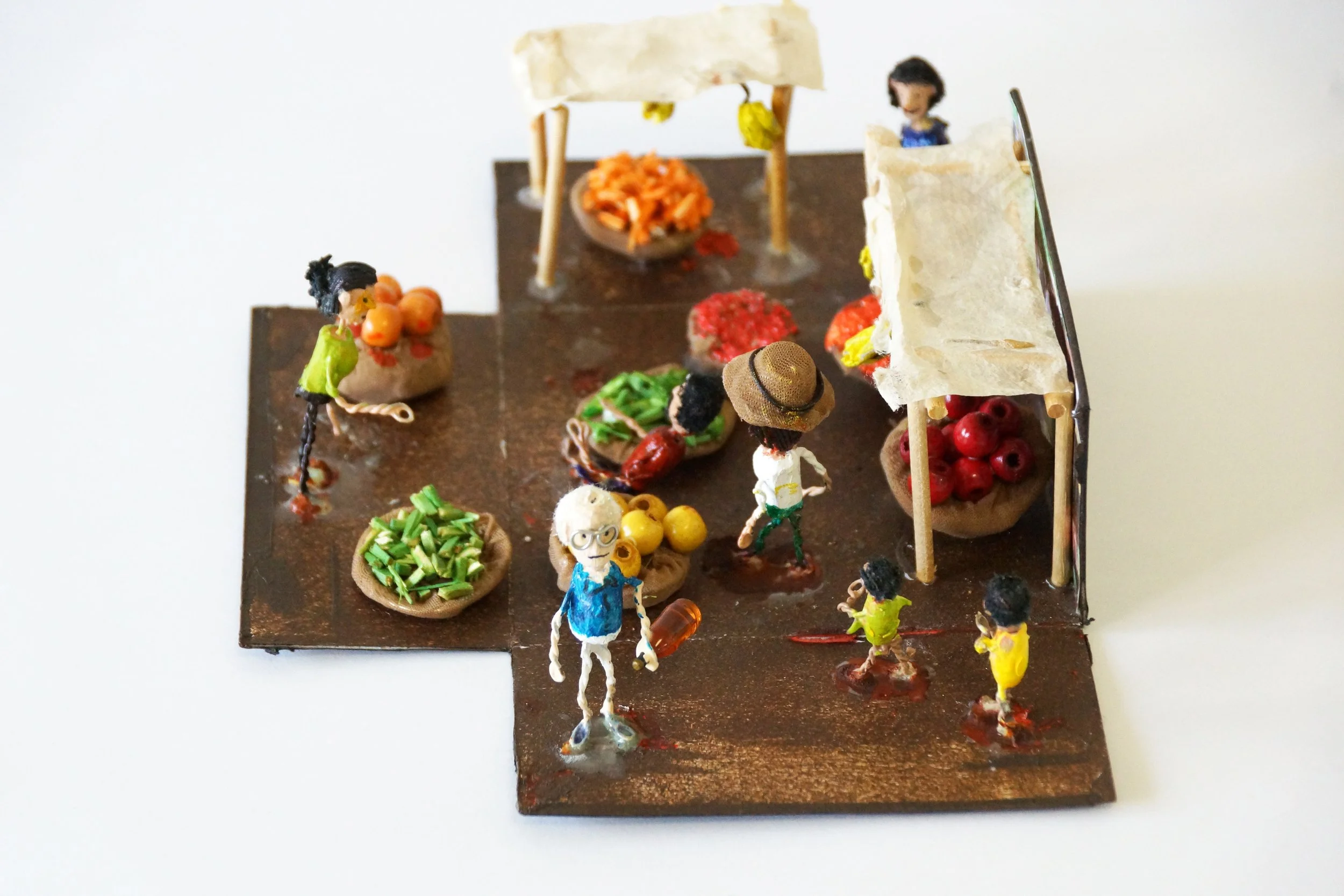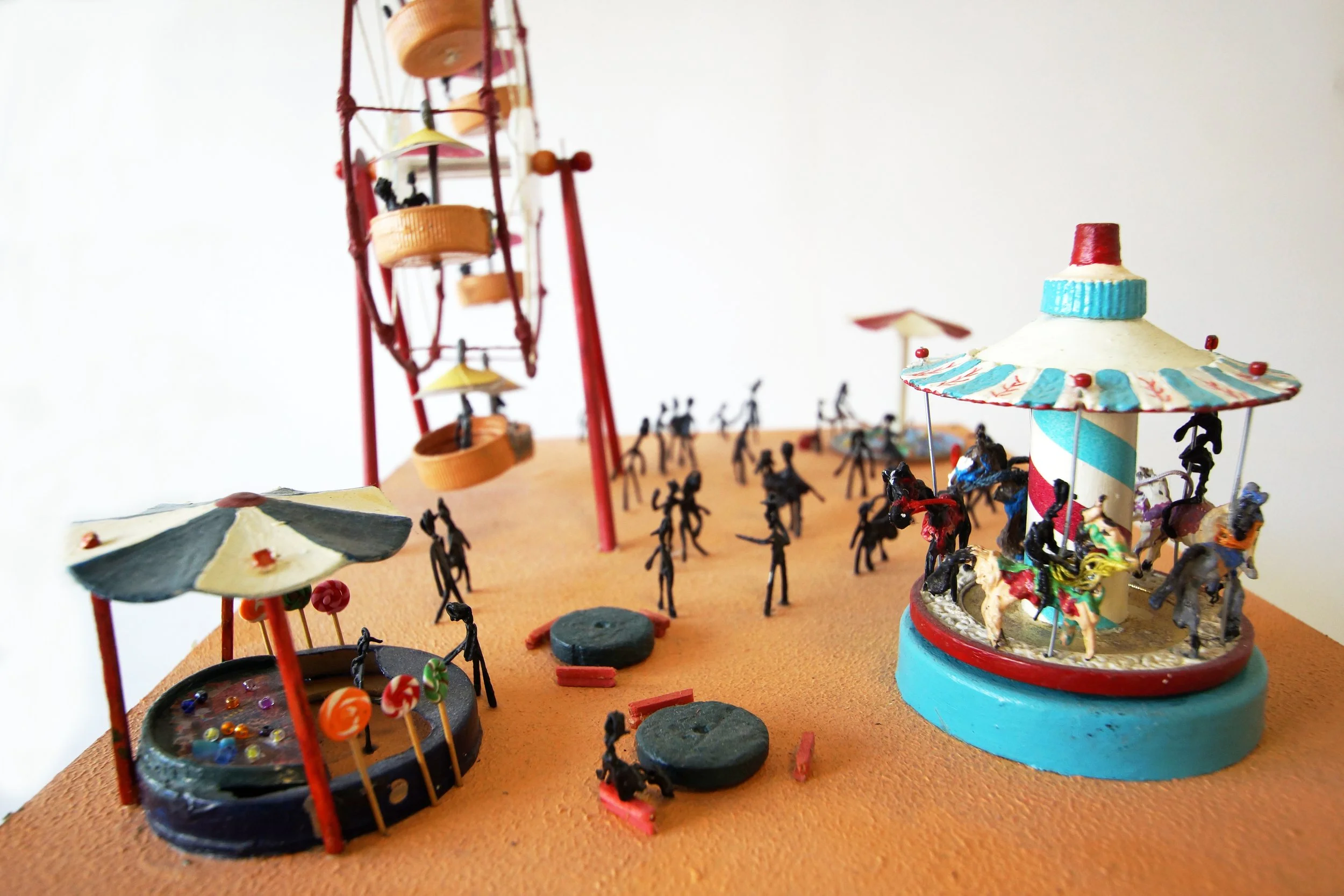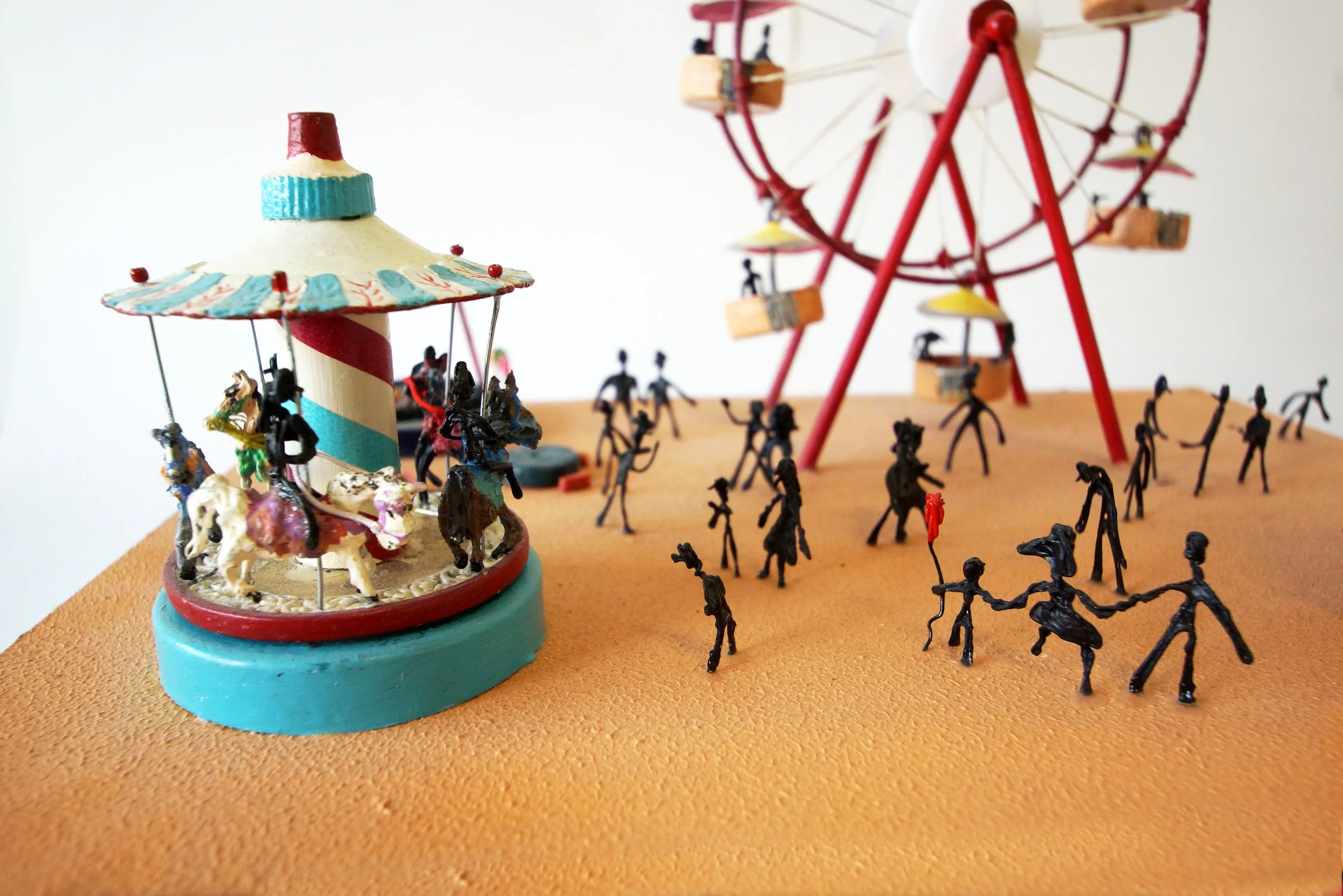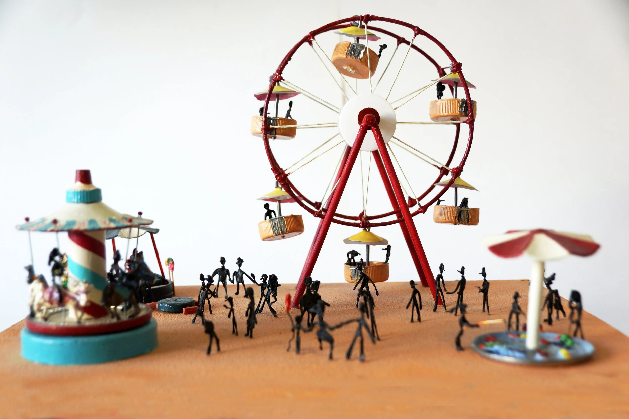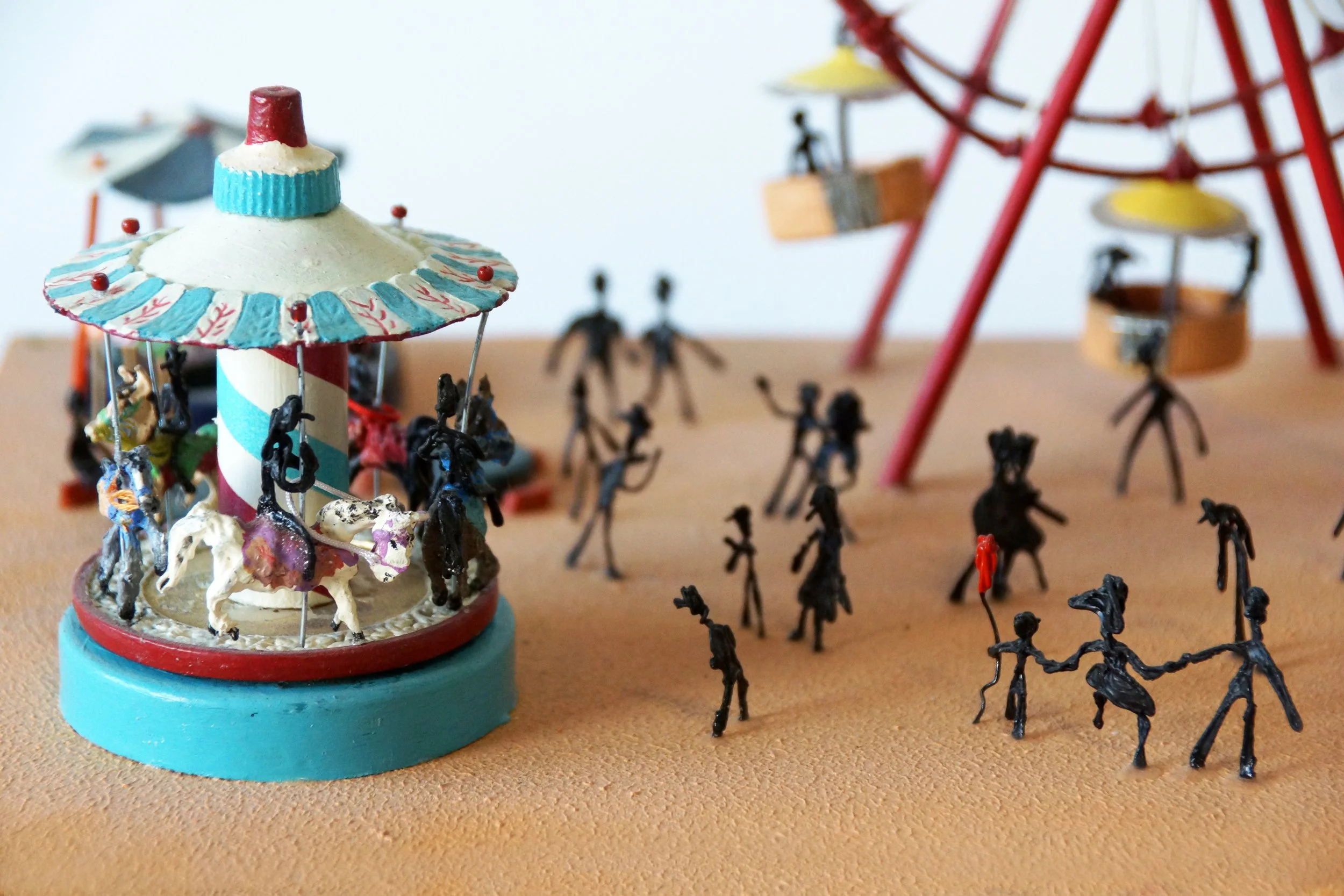 The characters were made of carved wooden pearls and iron wire.