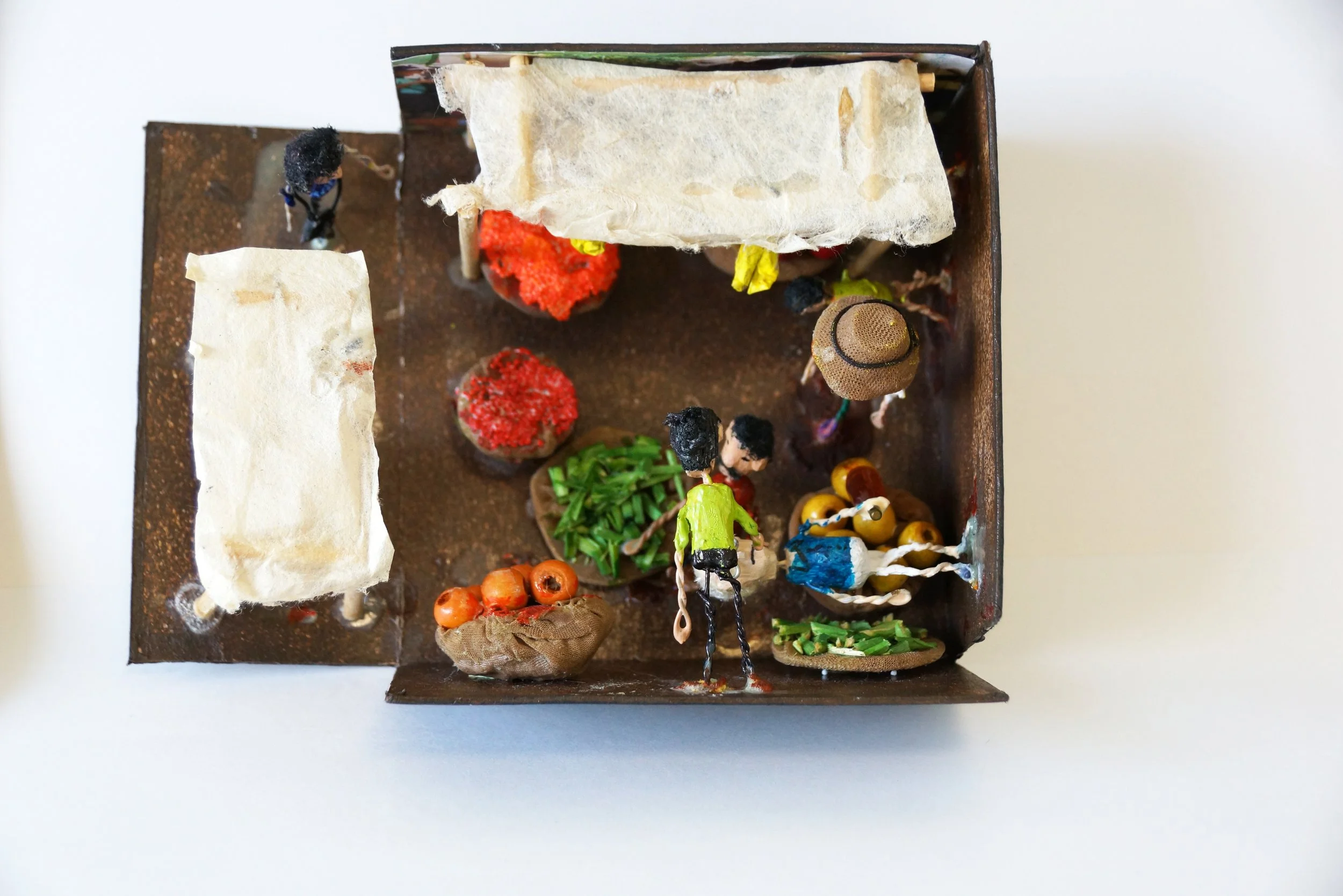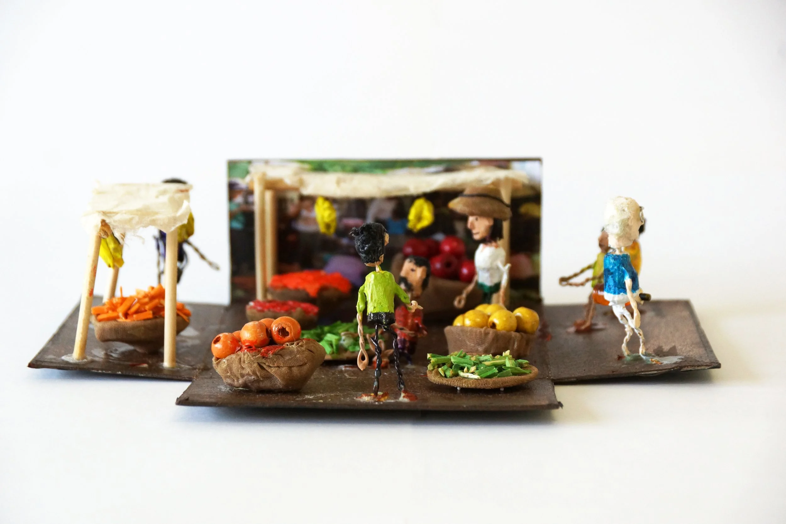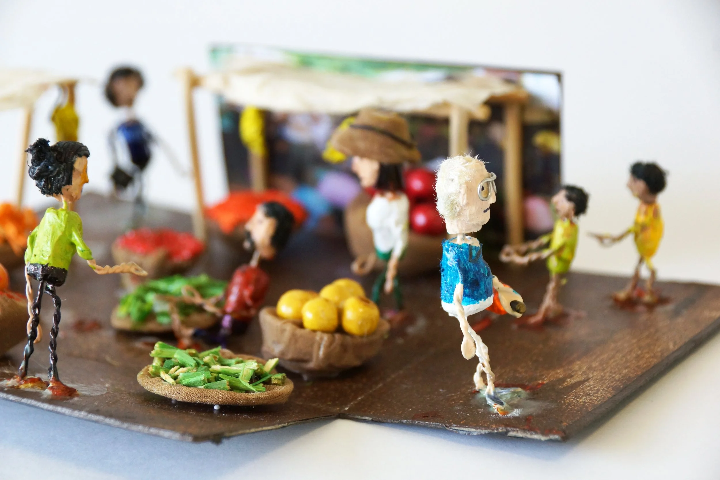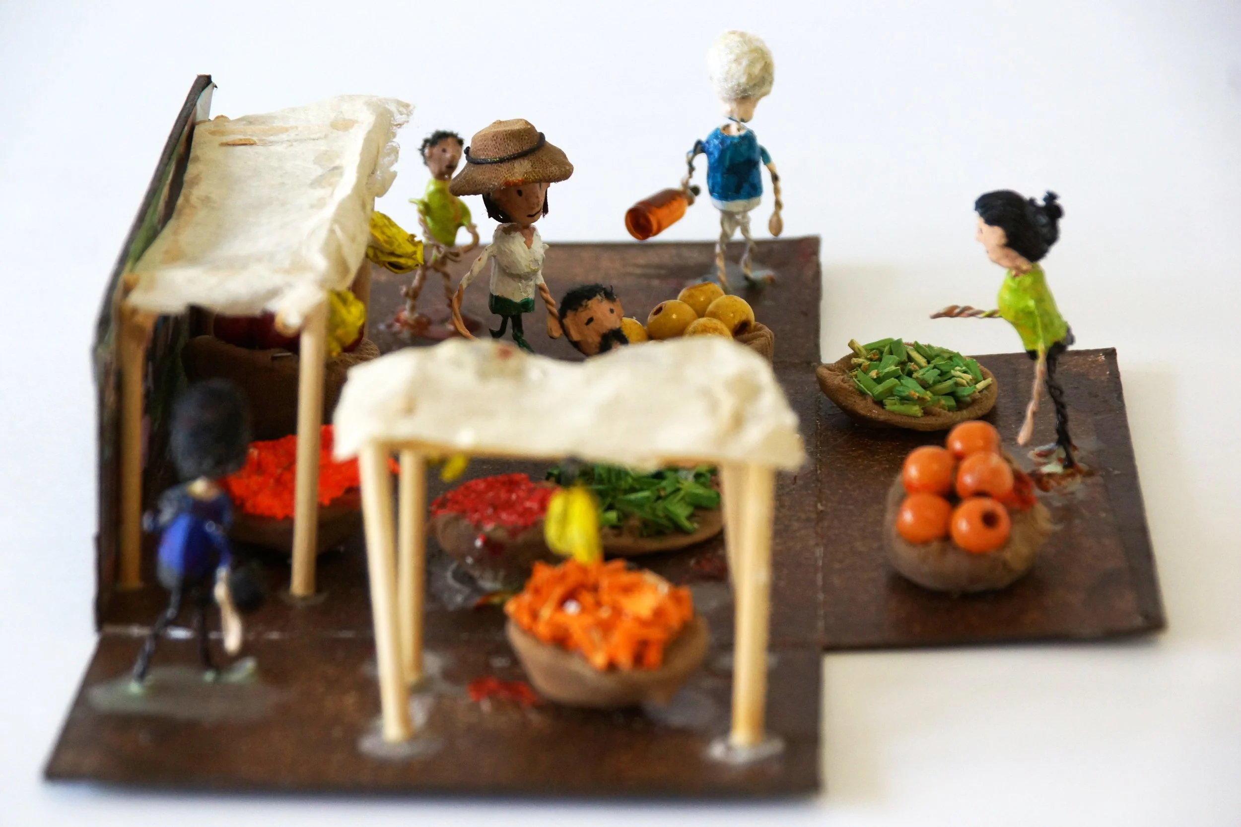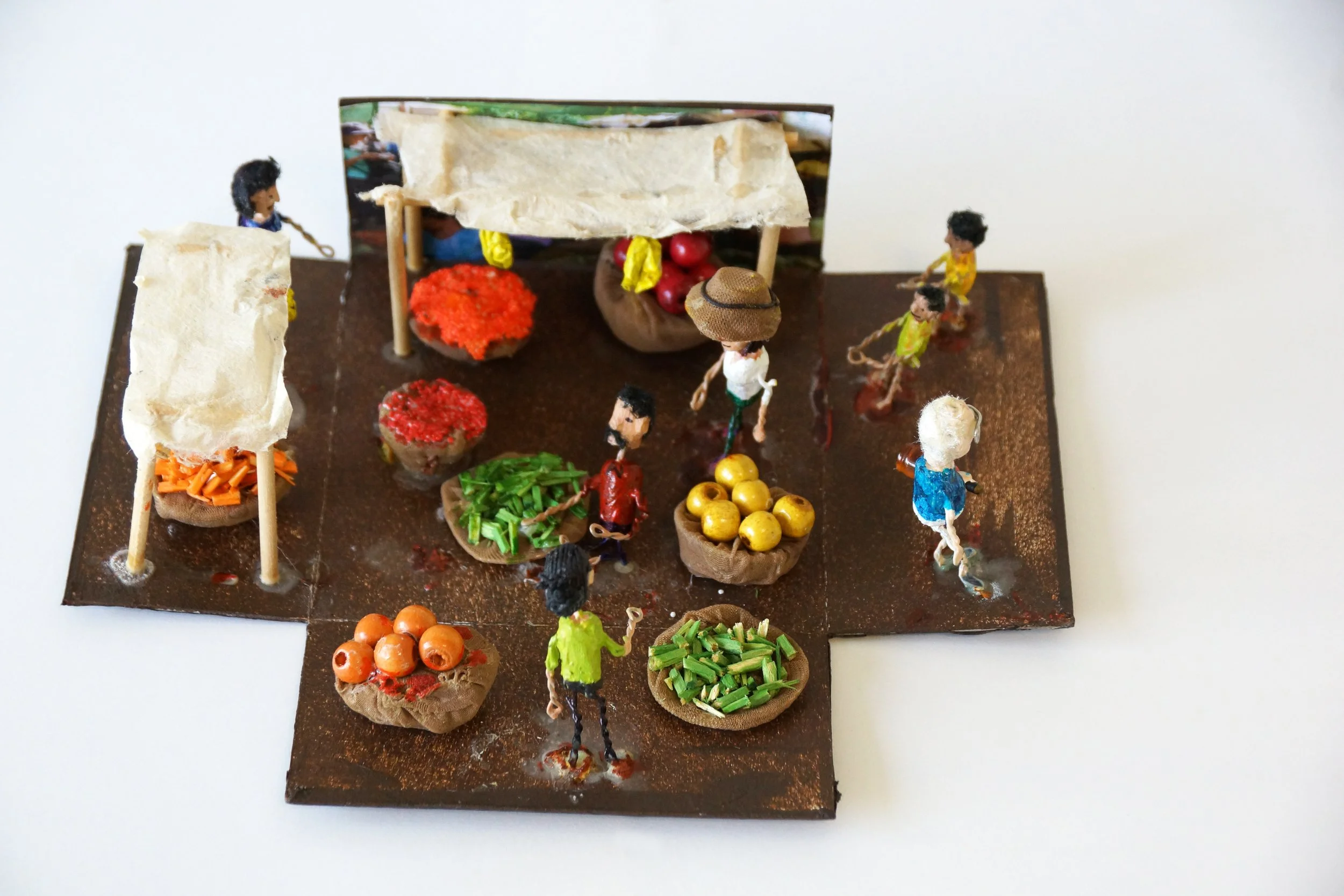 The characters were made of carved wooden pearls and iron wire.
